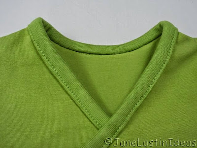 The collar is with the new method I have learned, but for the hem I took the risk with my sewing machine. I put the foot pressure nearly to zero and used a slight zig-zag stitch. The problem when taking of the foot pressure is that the transport is not always regular. But in this case it worked okay and I am quite happy with the result.